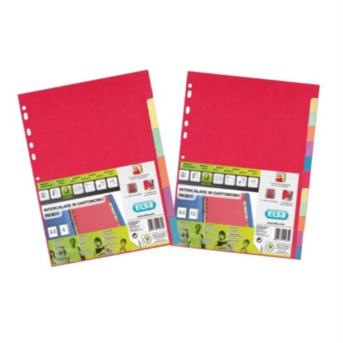 Divisori realizzati in cartoncino 100% riciclato da 240gr. 6 differenti colori con foratura universale. Formato A4
