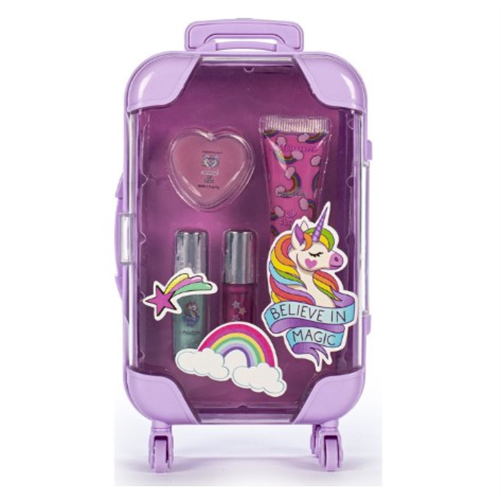 Il set mini trolley con 4 lip balm è un'adorabile e pratico insieme di prodotti per la cura delle labbra, presentato in un mini trolley che aggiunge un tocco di originalità e stile.