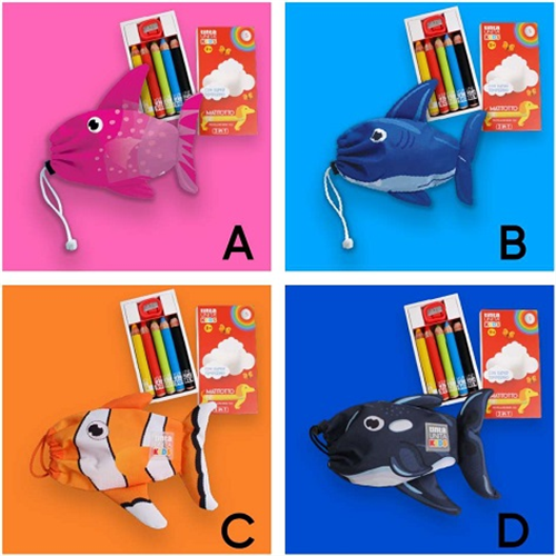 Bustina Tinta Unita Kids con scatola da 5 matitoni 3in1 e temperino - Pesce - 61022 - fucsia