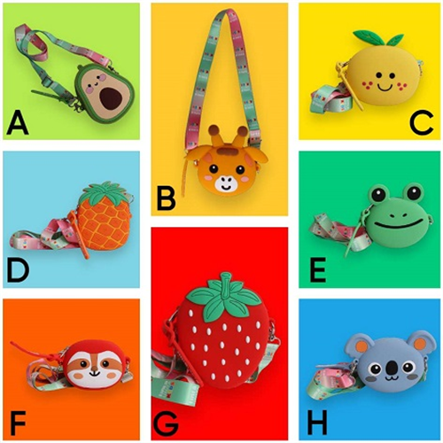 Borsetta con tracollaTintaUnita Kids Piccola borsa in silicone con tracolla a forma di animali o frutta Dimensione: 20x20x25cm