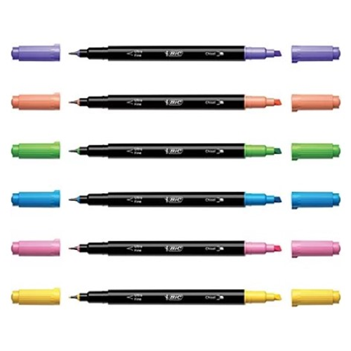 Pennarelli 2 in 1 in colori brillanti, uniscono un evidenziatore ed una punta fine in un'unico pennarello. Inchiostro a base di acqua.