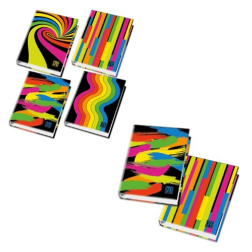 Copertine ad anelli ONE COLOR BLACK&FLUO dai colori accesi e dalle grafiche uniche per archiviare i fogli perforati e i ricambi.