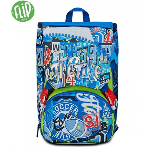 Zaino estensibile tramite zip laterali e con inserti rifrangenti. Dotato di FLIP SYSTEM 3D: il sistema di pattine sfogliabili con due grafiche diverse di cui quella principale in 3D.