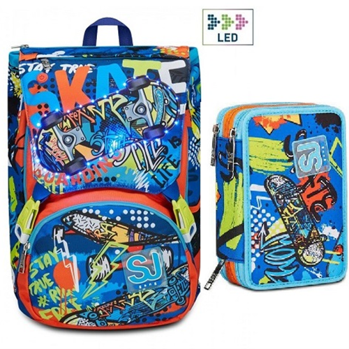 Ciao! Sono il coloratissimo Astuccio 3 zip SJ Gang. Dotato di 3 scomparti completi di tutto il materiale necessario per fare al meglio i tuoi lavori di scuola, abbinami a uno zaino o a un trolley SJ Gang.