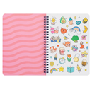 Quaderno formato A5 con rilegatura a spirale, copertina rigida e 80 fogli quadrettati da 80 gr all'interno. Include un foglio di adesivi.