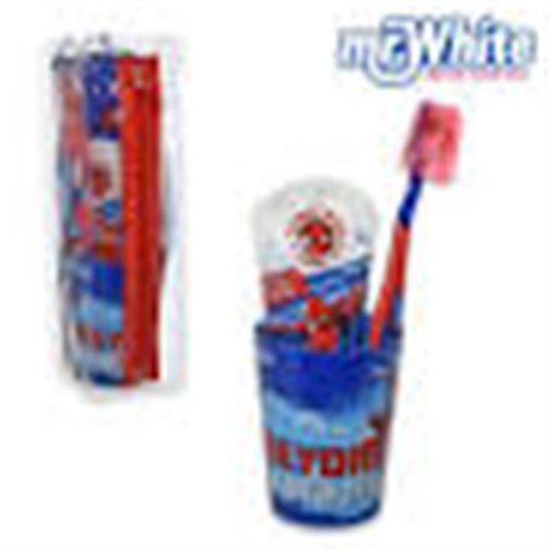 Il kit Spiderman pensato appositamente per i bambini dai 3 anni in su per aiutarli ad adottare buone abitudini di igiene orale in modo divertente. Contiene uno spazzolino manuale con setole morbide e arrotondate con impugnatura ergonomica che permette di pulire delicatamente i denti da latte e le gengive rispettando lo smalto dentale, un cappuccio protettivo per l'igiene, un gel dentifricio che rimuove la placca e protegge i denti oltre ad uno spazzolino riutilizzabile e bicchiere per il risciacquo.