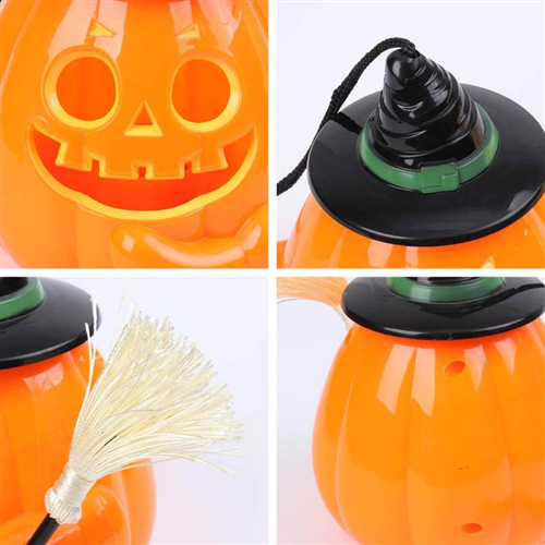 14*10 cm (zucca). Lunghezza totale 28 cm. Con luci e suoni. Batteria a bottone inclusa.