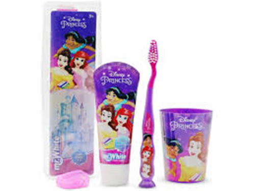 Il kit Principesse pensato appositamente per i bambini dai 3 anni in su per aiutarli ad adottare buone abitudini di igiene orale in modo divertente. Contiene uno spazzolino manuale con setole morbide e arrotondate con impugnatura ergonomica che permette di pulire delicatamente i denti da latte e le gengive rispettando lo smalto dentale, un cappuccio protettivo per l'igiene, un gel dentifricio che rimuove la placca e protegge i denti oltre ad uno spazzolino riutilizzabile e bicchiere per il risciacquo.