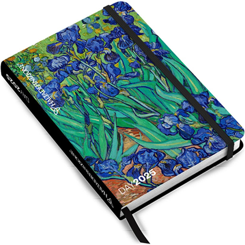 Agenda giornaliera 12 mesi (dal 1 gennaio al 31 dicembre 2025) formato mini. Chiusura con elastico. All'interno sono presenti: segnalibro, pagine per note e appunti, planner e calendario 2025. In copertina l'opera "Iris" di Van Gogh.