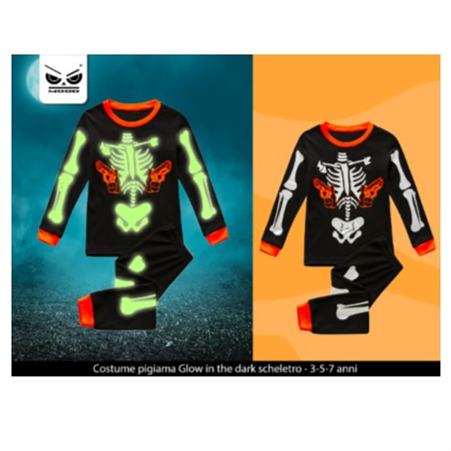 Pigiama da bambino-a in 3 misure: 3-5-7 anni. Al buio lo scheletro di illumina!
