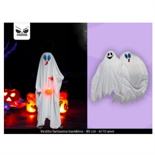 80 cm. 6-10 anni. Vestito da fantasma da bambino in poliestere.