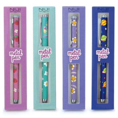 Penna sfera fusto in metallo decorato groovy - Niji art. 81905 - inchiostro nero - fusto viola