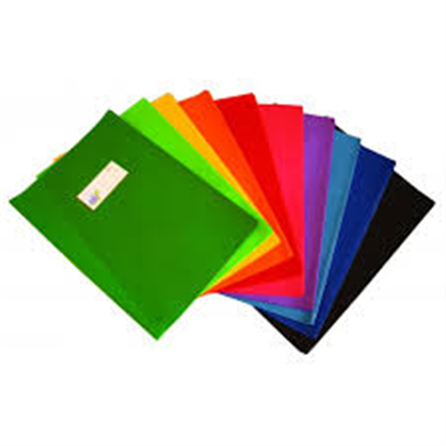 Copertina per quadernoni coprente in PVC 220µ. Munita di etichetta rimovibile e alette interne.