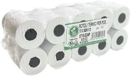 ROTOLO CARTA TERMINCA BIANCA PER STAMPANTE FISCALE MM. 57x15 MT. PZ. 10 La produzione di rotoli in carta termica e pura cellulosa viene fatta utilizzando materie prime certificate per il rispetto dell’ambiente. L’azienda, grazie alla collaborazione con le diverse industrie di carte nel mondo e all’impiego di una struttura operativa altamente specializzata, riesce a produrre rotoli in carta per i diversi impieghi