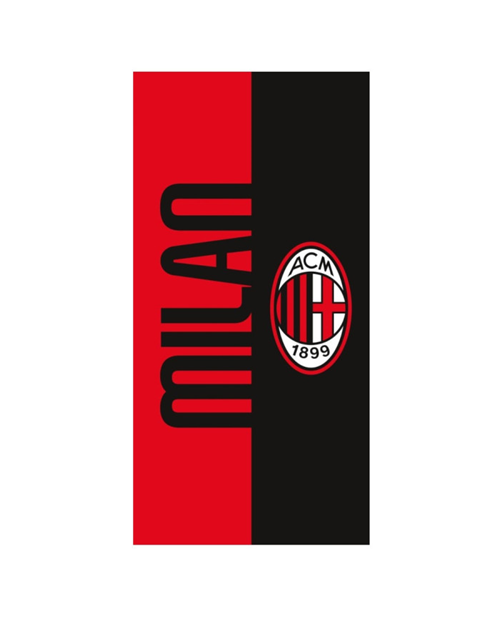 Telo Mare Milan in cotone cinigliato, perfetto per tifosi rossoneri.