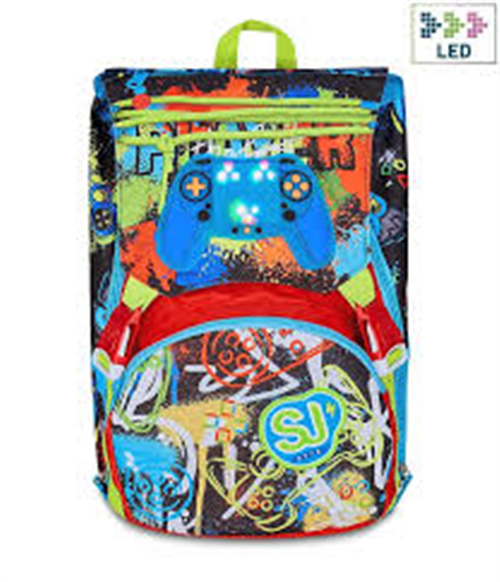 Ciao! Sono GAME-LED BOY, lo zaino estensibile SJ GANG per andare a scuola e giocare! Divertiti ad accendere il LED posizionato sulla pattina staccabile tramite il pulsante on/off, e ricaricalo attraverso l’usb quando vuoi. Ho un doppio scomparto spazioso, di cui puoi aumentare facilmente la capienza tramite le zip laterali per poter accogliere e distribuire in modo ottimale libri, quaderni e tutto ciò che ti serve per la tua giornata, potendo sfruttare anche la tasca frontale. Inoltre, sono davvero comodo da indossare sulle spalle, grazie a schienale e spallacci confortevoli. In più, il fondo integrato mantiene la mia struttura inalterata, garantendo la stabilità del contenuto anche a pieno carico.