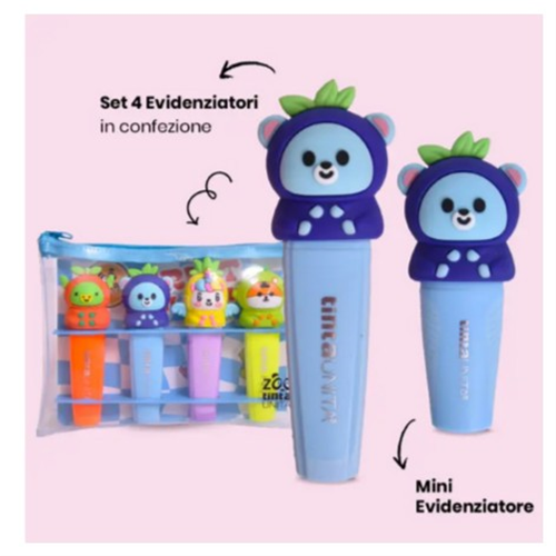 Evidenziatore mini TintaUnita Zoo Fruit collection - Mirtillo orsetto - azzurro