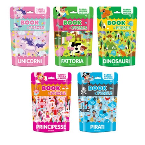 Creativi, divertenti e didattici! Cinque titoli della collana Book & Puzzle di grande successo in una nuova edizione: Principesse, Dinosauri, Pirati, Unicorni e Fattoria! All'interno di ogni confezione un libro e un bellissimo, grande puzzle con 48 tessere per il divertimento di tutti i bambini! Età di lettura: da 3 anni.