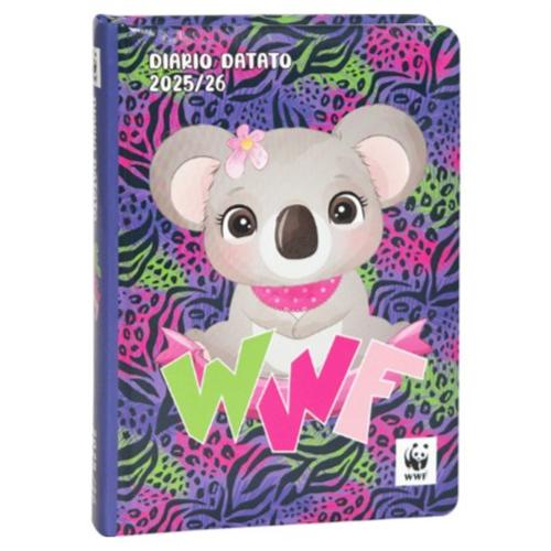Diario Panini 2025/2026 - WWF illustrato - 12 mesi - datato - fogli a quadretti - standard 13x18cm - copertina rivestita in tessuto - koala