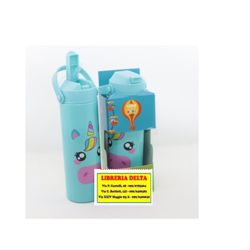 Borraccia in acciaio a doppia camera Tinta Unita Kids - 550ml - Unicorno celeste