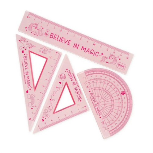 Nella vita è importante avere una buona squadra che ci supporti. Ma anche un righello e un goniometro! Detto, fatto: il Set di Geometria - You Rule! - Unicorn è pronto a entrare in ogni kit da disegno e accompagnarti a scuola o al lavoro. E se i tuoi piani cambiano continuamente, non preoccuparti: è in materiale super flessibile.