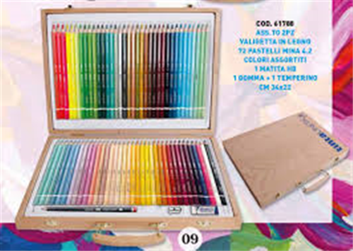 Valigetta in legno 2 piani TintaUnita Art 61788 - 72 pastelli TintaUnita