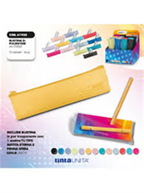 in PVC lucido e con omaggio TU Tips (doppia punta: matita infinita e penna)