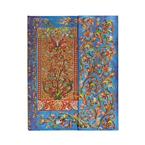 Affondare lo sguardo nelle scintillanti profondità dell’azzurro intenso di Delphinium, della serie Acque Fiorentine, riporta la mente allo sfarzo del tempo. Riproduzione di un’incisione tratta da una raccolta di motivi del 1890, questo diario variopinto celebra l’arte dell’ornato, gli intrecci di filigrane e la massima espressione dell’arte dei motivi decorativi su carta.