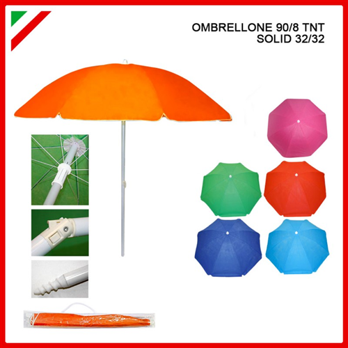 Ombrellone Spiaggia Puntale Vite 190cm, in tessuto TNT con colori assortiti. Ombrellone con snodo e punta in plastica a vite per facilitarne il montaggio, ideale per la spiaggia.