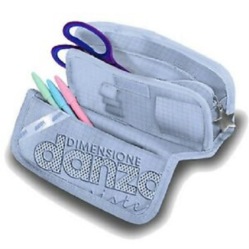 Bustina porta penne a due cerniere avente una terza tasca con chiusura in feltro.