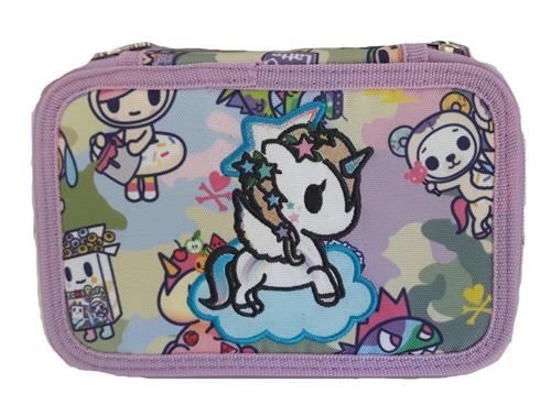 ASTUCCIO CORREDINO 3 CERNIERE TOKIDOKI COMICON ART.60828 Contenuto: 1 Penna cancellabile Blu Frixion 18 Pennarelli a punta fine Giotto Turbo Color 18 Matite Colorate Giotto Laccato 1 Matita Grafite HB Lyra 1 Penna rossa Tratto Uno 1 Evidenziatore Giotto Turbo Color 1 Temperino Lyra 1 gomma, 1 righello15 cm., 1 goniometro, 1 squadra, 1 paio di forbici con punta arrotondata