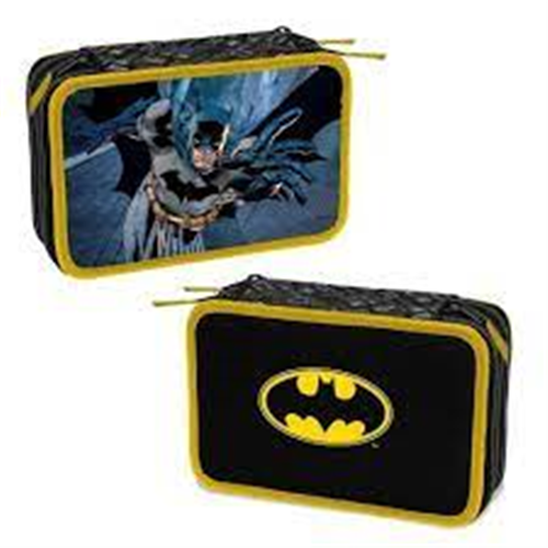 Astuccio Batman 2020, adatto per la scuola primaria e secondaria. Costruito con materiali resistenti, con interni foderati e 3 Zip ultra scorrevoli. Dotato di accessori di altissima qualità, tra cui 18 Pastelli Fila, 18 Pennarelli Giotto Turbocolor, 1 Penna Tratto Cancellik, 2 Penne Tratto 1, 1 matita Lyra , 1 gomma, 1 temperino e tantissimo altro.