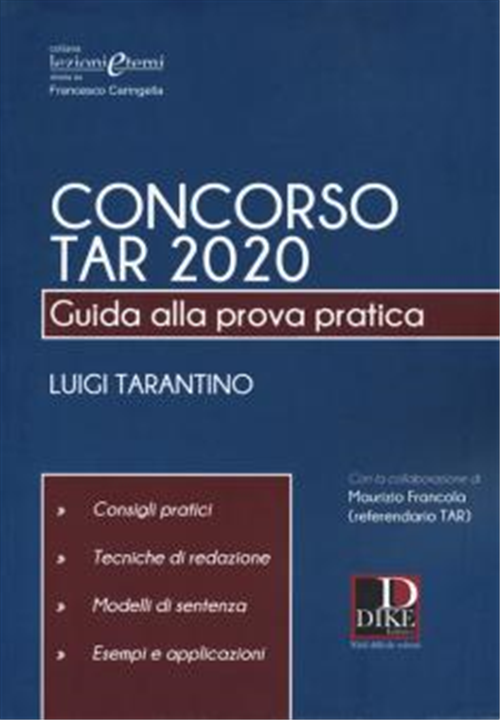 Il volume: - offre una risposta alla ricorrente domanda sulle migliori modalità per superare la prova pratica del concorso Tar - guida con cura il lettore nella elaborazione della migliore sentenza TAR - riporta consigli pratici, tecniche di redazione, esempi e applicazioni, alla luce della dottrina e della giurisprudenza amministrativa dominante - è arricchito dalla selezione di alcune sentenze utili per assimilare le modalità di stesura di quelle pronunce per le quali sono richieste regole particolari o un rito speciale In questa seconda edizione, è aggiornato alle più recenti novità normative, quali il decreto sblocca cantieri (D.L. 32 del 18 aprile 2019, convertito con L. n. 55 del 14 giugno 2019) e il decreto crescita (D.L. 30 aprile 2019, n. 34, convertito con l. 28 giugno 2019, n. 58)