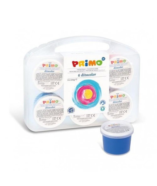 Tempera a dita in vasetto, pronta all’uso, in pratica valigetta riutilizzabile, 6 colori. Adatta al contatto con la pelle è rivolta alla prima infanzia ed è espressamente studiata per essere applicata con le dita su supporti come carta, cartone e materiali diversi. Morbida e piacevole da toccare, si stende facilmente e da asciutta mantiene colori intensi, brillanti e lucidi, senza screpolature anche quando stesa in strati spessi. Applicata sui vetri delle finestre crea bellissimi effetti di vetrage. Rimuovere subito le macchie secondo istruzioni.