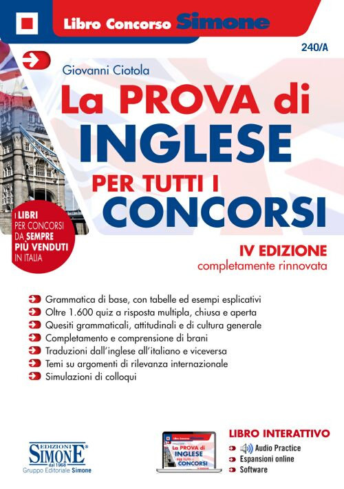 Sono sempre più numerosi, oggi, i concorsi pubblici che prevedono, tra le materie del bando, la conoscenza di una lingua straniera; e questo sia nella fase della verifica preselettiva, sia in occasione delle prove scritte e orali. La lingua che più spesso risulta oggetto d'esame è, senza dubbio, l'inglese, ancor più che in passato idioma di riferimento della comunicazione internazionale. Proprio in virtù di questa considerazione, abbiamo pubblicato il presente volume, giunto alla sua quarta edizione e rivolto a quanti intendono conseguire una preparazione mirata ed efficace per sostenere qualunque tipo di prova concorsuale vertente sulla lingua d'Oltremanica. A tal fine, l'opera propone una rassegna delle tipologie di verifica maggiormente utilizzate: dai quesiti a risposta multipla (i quali costituiscono la metodologia di selezione / preselezione più diffusa) a quelli a risposta chiusa e aperta; dalle traduzioni ai temi / elaborati brevi (che caratterizzano, in genere, taluni momenti delle prove scritte); per finire al colloquio in lingua (ormai una consuetudine delle prove orali), preceduta da una sezione teorica, che consente al lettore di ripetere e fissare le principali regole linguistico-grammaticali del British / American English.