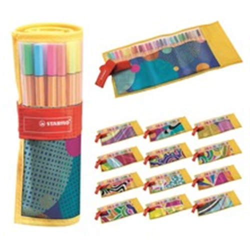 Confezione in nylon con finestra trasparente e chiusura in velcro contenente 20 penne Stabilo 88 + 5 penne Stabilo 88 dai colori fluorescenti, per un totale di 25 penne Stabilo 88!