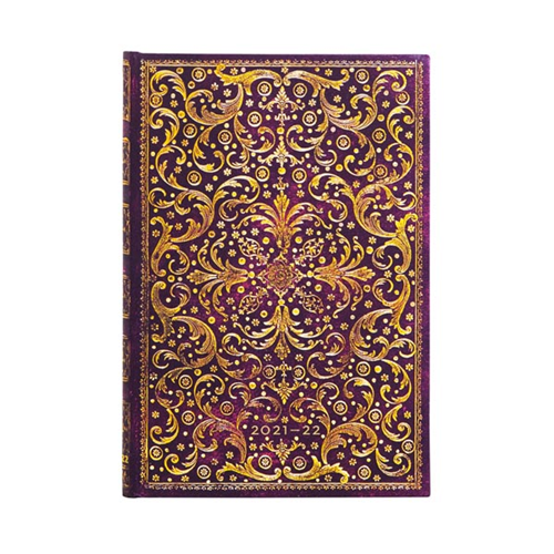 I motivi della serie Aurelia sono degni di un re. L’ispirazione viene dalla Parigi di metà del XVIII secolo ovvero dalle copie originali dei riti della Settimana santa del re Luigi XV. Il motivo di questa copertina rappresenta una meravigliosa profusione di dorature rococò raffiguranti uccelli, fiori e foglie. DIMENSIONI Larghezza: 95mm (3¾"). Altezza: 140mm (5½"). Profondità: 18mm (¾"). LINGUA - INTERNO Italiano. INTERNO Orizzontale. PERIODO Luglio 2021 – Dicembre 2022. NUMERO DI PAGINE 208 Pagine. CHIUSURA Chiusura con Fascia Elastica. COLORE Viola. G/MQ (PESO DELLA CARTA ) 80. COPERTINA Copertina rigida. STAMPA DECORATIVA No. TIPO DI RILEGATURA Legatura A Filo Smyth. TIPO DI CUSTODIA\BORSELLINO Tasca Per Ricordi. TIPO DI CARTA INTERNA Liscia. NASTRINI SEGNALIBRO 2. ALTRE CARATTERISTICHE Rilegature realizzate al 100% con materiali riciclati. Copertina rifinita con carta decorativa stampata. Pagine in carta certificata FSC. Cuciture intrecciate e colla al bisogno. Carta priva di acidi, proveniente da foreste gestite in modo sostenibile. Calendario mensile. Tavole di conversione. Calendario annuale. Prefissi telefonici internazionali. Minicalendari. Festività internazionali. Fusi orari. Pagine per gli appunti. Inserto Rubrica. Targhetta.