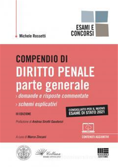 Il presente compendio tratta il diritto penale sostanziale nella parte generale, con un approccio sistematico e organico, idoneo per la preparazione di esami e concorsi. Il testo è aggiornato alla L. 14 agosto 2020, n. 113 (in materia di circostanze aggravanti), nonché alla giurisprudenza recente, anche costituzionale. Completano il volume le domande più frequenti alle sessioni d'esame, con esempi di risposta e schemi riepilogativi di analisi normativa.