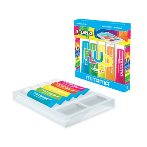 Box colori a tempera Mitama 42869 - 5 pz x 21 ml - colori fluo