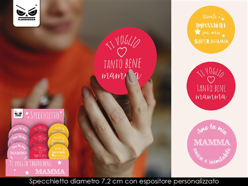 Diametro 7,2 CM. Specchietto in plastica rigida. Mood design.