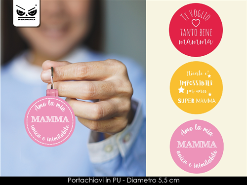 Dimensione: 5,5 cm diametro. Con moschettone e portachiavi. Materiale PU.