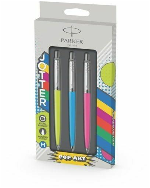 Penne a sfera Parker Jotter Pop Art - box da 3 penne - fusto giallo / azzurro / fucsia