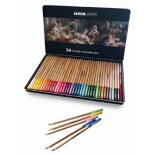 36 Pastelli a colori in legno Tinta Unita con mina da 4mm acquerellabile, in scatola in metallo. Ricca di pigmenti coloranti,colori vivaci,ottima resa,facili da temperare. Una mina ancora più grande per un grande artista! Il massimo della qualità per dare più colore ai tuoi disegni.