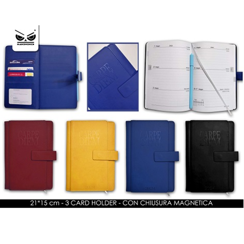 Agenda Carpe Diem Professional 2024 in similpelle - 21x15 cm - settimanale - con porta card - chiusura magnetica - nera