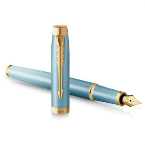 Stilografica Parker in acciaio inossidabile con finitura metallica satinata sfumata e completata con finiture cromate. Confezionata in elegante astuccio regalo. Fornita con cartuccia colore blu.