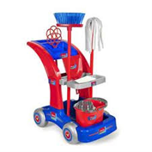 Carrello Maxi Per Pulizie Con Accessori ; Contenuto set: un secchio. mocio. scopa. paletta, battipanni, carrello. ; Dimensioni: altezza 50 cm. ; Età: 18m+.