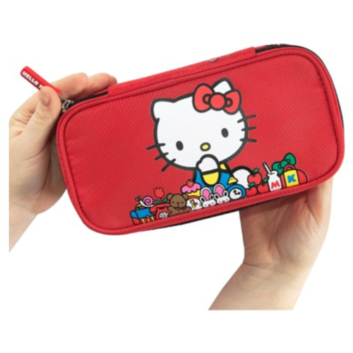 L'astuccio ovale personalizzato Hello Kitty è ideale per bambini e ragazzi appassionati di videogiochi. Grazie alle dimensioni di 22x7,5x11 cm, alla tasca interna e al divisorio con passanti elastici su entrambi i lati, permette di contenere e organizzare in modo ottimale penne, matite, gomme e altro ancora. Preparati ad esprimere la tua creatività in modo organizzato e divertente!